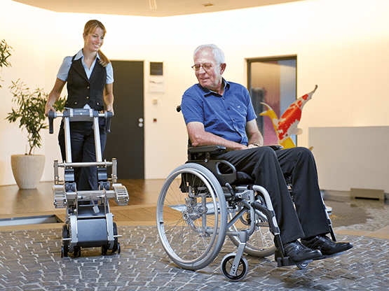 TK 100 – Treppenkuli jest sprawdzonym i nowoczesnym schodołazem gąsienicowym. Jego głównym przeznaczeniem jest transport osób poruszających się na wózkach inwalidzkich pomiędzy kondygnacjami budynków nieposiadających wind. Urządzenie jest bardzo uniwersalne, gdyż pasuje do prawie każdego rodzaju wózka. Dodatkowo cechuje się bardzo łatwą obsługą, posiada bowiem prosty i wygodny w użyciu system mocowania wózków inwalidzkich. Schodołaz ma kompaktowe, niewielkie wymiary, ale jednocześnie jego konstrukcja jest solidna i wytrzymała. Jego zasilanie jest elektryczne, dzięki czemu transport chorej osoby nie wymaga użycia dużej siły. Dzięki swojej konstrukcji schodołaz jest łatwy do składania i przewożenia nawet z mniejszych samochodach. Nie trzeba go w żaden sposób montować, więc jego użytkowanie nie wiąże się z koniecznością załatwiania żadnych zezwoleń budowlanych.